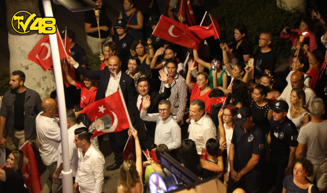 Eş zamanlı olarak düzenlenen etkinlikler, kortej yürüyüşleriyle başladı. Türk Bayrakları ve meşalelerle meydanlara yürüyen binlerce vatandaş coşkuyla marşlar okudular. Bodrum Belediye Meydanında Sunucu Ateş’in, Turgutreis Atatürk Meydanında ise Banu Tarancı’nın sunumlarıyla karşılanan vatandaşların coşkusu bir kat daha arttı.