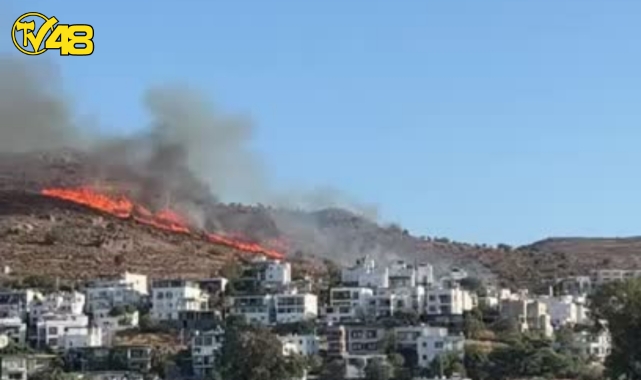 Bodrum Türkbükü Mahallesi'nde otluk ve makilik alanda başlayan, rüzgarın etkisiyle geniş bir alana yayılan alevlere müdahale ediliyor.