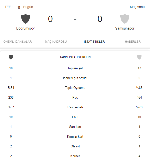 TFF 1. Lig'de mücadele gösteren Bodrumspor bu gün Bodrum Şehir Stadından oynanan Samsunspor karşılaşmasında berabere kaldı.