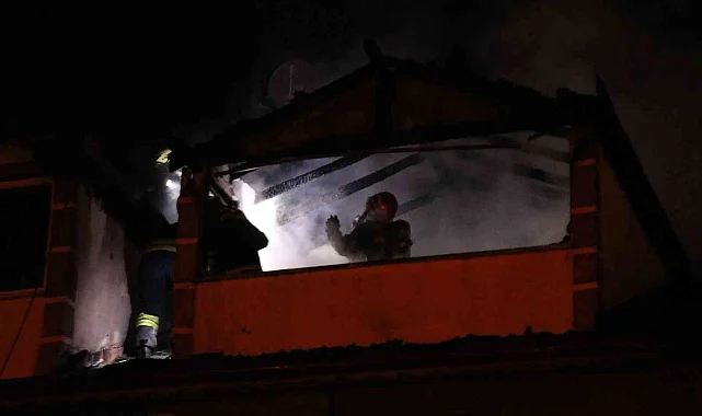 Bolu'da 3 katlı apartmanın çatı katı, çıkan yangında alev alev yanarak kullanılamaz hale geldi.