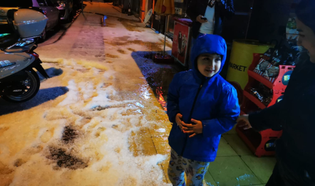Kar yağışına hasret Marmarisliler, yağan doluda doyasıya eğlendi |