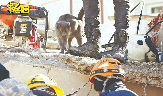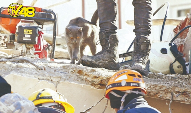 Malatya’da depremin dördüncü gününde arama kurtarma ekipleri, devamlı enkaza girip çıkan bir kedi fark etti.