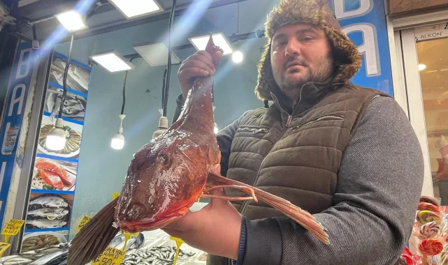 Ordu açıklarında balıkçı ağlarına takılan ve 'Akdeniz balığı' olarak bilinen, ilginç renk ve görünümlü 4 kiloluk kırlangıç balığı ilgi odağı olurken, fiyatı ile de şaşırtıyor. Tezgahta kilosu 200 liradan satılan 4 kilo ağırlığındaki kırlangıç balığı, 800 liraya alıcısını bekliyor