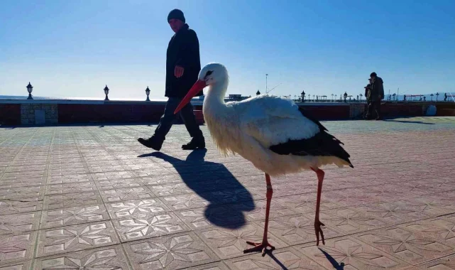 Zaman zaman sahil gezintisine çıkan leylek, vatandaşlarında yoğun ilgisiyle karşılaşıyor. Artık her yere yürüyerek giden ve şehrin maskotu haline gelen leylek, vatandaşlarla fotoğraf çekiliyor ve rahat rahat insanların ellerinden yem yiyebiliyor. Kentte insanların yakın ilgi ve alakasından dolayı leyleğin uçup başka bir yere gitmeye niyeti yok.