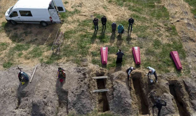 Ukrayna'nın Bucha kentinde Rusya'nın saldırılarında hayatını kaybeden siviller, kimlik tespitinin ardından düzenlenen törenle toprağa verildi.