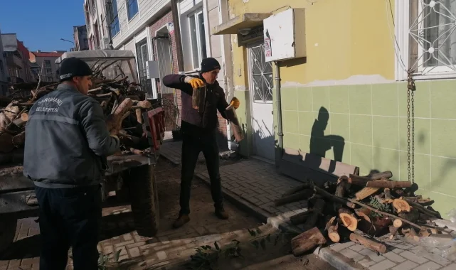 Saruhanlı Belediyesi, ilçedeki cadde ve sokaklarda budanan ağaç dallarını, yakacak ihtiyacı olan ailelere ücretsiz olarak dağıttı.