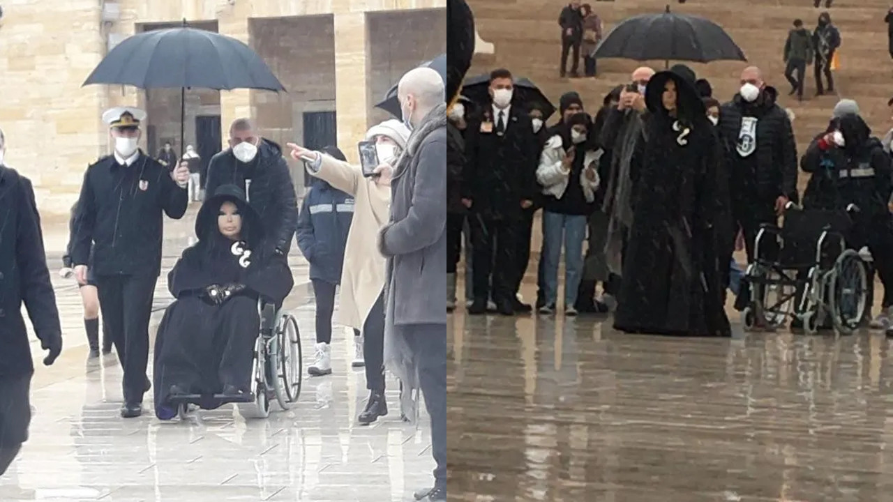 Diva olarak anılan ünlü sanatçı Bülent Ersoy'un Anıtkabir görüntüleri, sosyal medyaya bomba gibi düştü. Tekerlekli sandalyeyle yağmur altında gittiği Anıtkabir'de, bir askerin şemsiyeyle Bülent Ersoy'a eşlik etmesi tepki topladı.