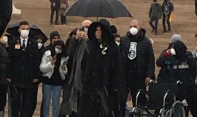Yağmurlu havada yapılan ziyarette yanındakilerle birlikte bir askerin de Bülent Ersoy'a şemsiye tuttuğu görülüyor. Bu durum ise sosyal medyada tepki topladı.