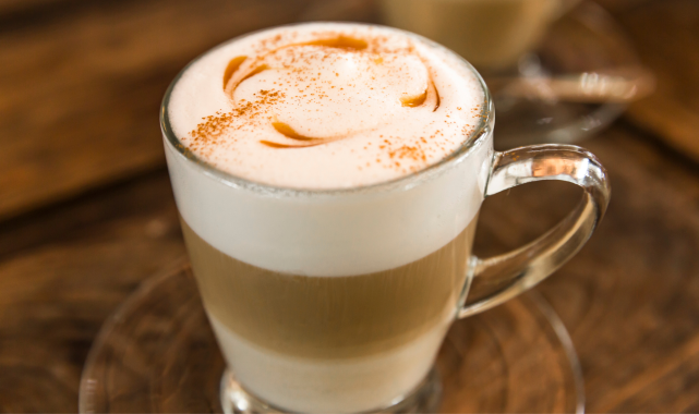 3. Espresso üzerine çırptığınız sütü yavaş yavaş dökün. Daha sonra sütün dibinde kalan köpüğü bir kaşık yardımıyla alarak fincanın üstünü tamamen kaplayacak şekilde yayın.