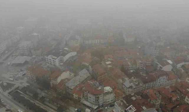 Yoğun sisin etkili olduğu kent havadan görüntülendi.