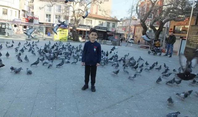 Burhaniye ilçesinde, Cumhuriyet Meydanını mesken tutan güvercinleri beslemek için çok sayıda vatandaş seferber olurken, 5 yaşındaki Deniz Mete de güvercinlere yem atmak için sıraya girdi. Güvercinleri ilk defa kendisinin beslemeye başladığını anlatan İrfan Aşık da, duyarlı vatandaşlara teşekkür etti.