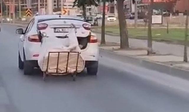 Bursa'da bir otomobilin bagajına çekçek araba bağladı. Herkesin canını tehlikeye atarak kilometrelerce ilerledi.