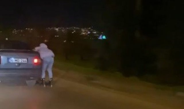 Edinilen bilgiye göre, patenli bir genç, otomobile tutunarak seyahat etti. Bu tehlikeli yolculuğu görenlerin yüreği ağzına geldi. Bir süre canını hiçe sayarak seyahat eden genç, arabayı bıraktıktan sonra hızlıca gözden kayboldu. Bu tehlikeli anlar cep telefon kamerasına yansıdı.