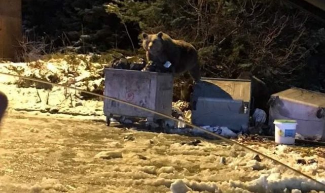 Öte yandan diğer görüntüde ise, ormanlık alanda aç kalan ayı ailesi yerleşim yerine inerek çöp konteynırlarında yiyecek aradı. Çöp kutularını deviren baba ayı ve 3 yavrusu, karınlarını doyurduktan sonra tekrar ormanın yolunu tuttu. Bu anlar kameralar tarafından saniye saniye kaydedildi.