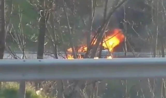 Bursa'da bir otomobil seyir halindeyken alev alev yanarak kullanılmaz hale geldi.