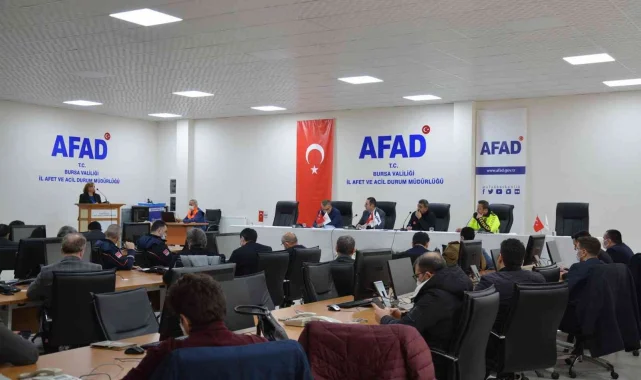 Bursa Vali Yardımcısı Halil Serdar Cevheroğlu başkanlığında Bursa İl Afet ve Acil Durum Müdürü Yalçın Mumcu ve ilgili tüm kurum-kuruluş temsilcilerinin katılımıyla gerçekleştirilen toplantının sonunda gerekli uyarılar kurum ve kuruluşlara gönderildi. Bursa AFAD olarak arama ve kurtarmalarda kullanılan araç ve malzemelerinin bakım ve yakıt ikmalleri yapılırken, ekipler teyakkuz durumunda hazır olarak beklemeye geçti. STK'larla iletişime geçilip, Bursa İl Afet ve Acil Durum Müdürlüğü ile koordineli bir şekilde müdahaleye hazır olarak beklemeleri konusunda ikaz edildi.