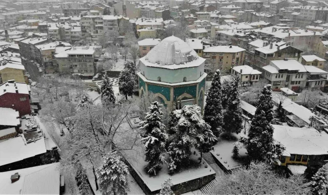 Öte yandan şehrin simgesi Yeşil Türbe ve Yeşil Camisi'nin drone görüntüsü izleyenleri büyüledi