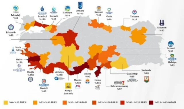 Aydın Büyükşehir Belediyesi %150 zam ile zirvedeyken, Konya Büyükşehir Belediyesi'nin zam yapmamış olması dikkat çekti..