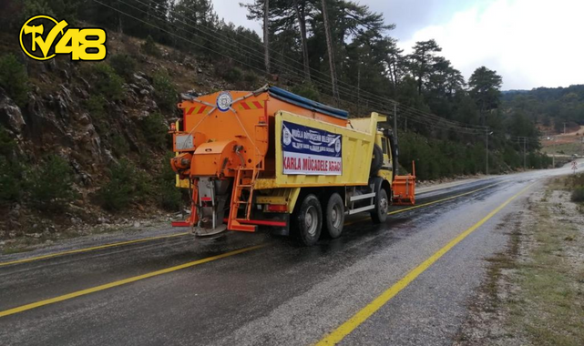 Muğla’nın bazı yüksek kesimlerinde etkili olan kar yağışı dolayısıyla Muğla Büyükşehir Belediyesi ekipleri yerleşim yerlerini ulaşıma açık tutmak için teyakkuz halinde beklerken, ekipler yollarda oluşan buzlanmalara anında müdahale ediyor.
