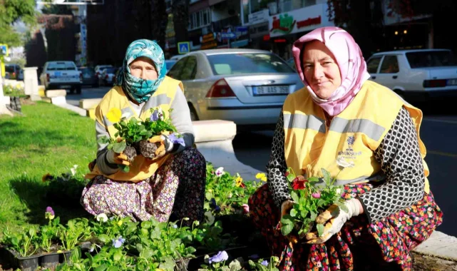 Aydın'ın Çine ilçesi Mutaflar Mahallesi'nin çalışkan kadınları Büyükşehir Belediyesi'ne hem çiçek satarak hem de sattıkları çiçeklerin dikimini yaparak ailelerine destek oluyor.