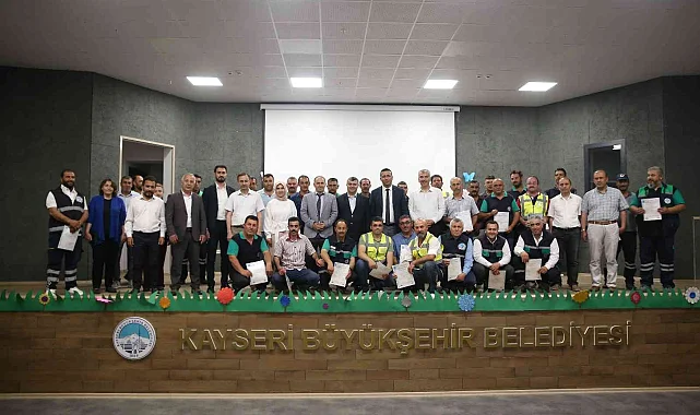 Kayseri Büyükşehir Belediye Genel Sekreter Yardımcısı Serdar Öztürk, Orman Yetiştirme ve Bakım İşçisi Mesleki Yeterlilik Belgesi almaya hak kazanan Park Bahçe ve Ağaçlandırma Daire Başkanlığı personeline belgelerini takdim etti.