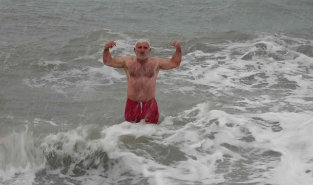 Buz Adam eksi 2 derecede denize girdi, kar banyosu yaptı