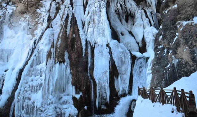 Hava sıcaklığının eksi 16'ya düştüğü Malatya'nın Darende ilçesinde buz tutan Günpınar Şelalesi, görüntüsüyle adeta kartpostallık görüntü oluşturdu.