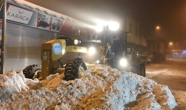 Van'ın Çaldıran ilçesinde etkili olan kar yağışı sonrası belediye ekipleri tarafından yürütülen kar temizleme çalışmaları devam ediyor.