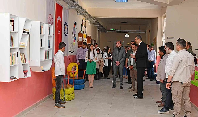 Protokol üyeleriyle kütüphanenin açılışını yapan Kaymakam Akbulut, Geri Dönüşüm Koridor Kütüphanesini gezerek yapılan çalışmalarla ilgili bilgi alıp, öğrenciler ve öğretmenlerle sohbet etti. Akbulut, atıl malzemelerden oluşan birçok ürünü özellikle de damacana kapakları ve taşlar kullanılarak elde edilen geri dönüşüm mangala oyununu, origami sanatını kullanarak yapılan perdeyi çok beğendiğini dile getirdi.