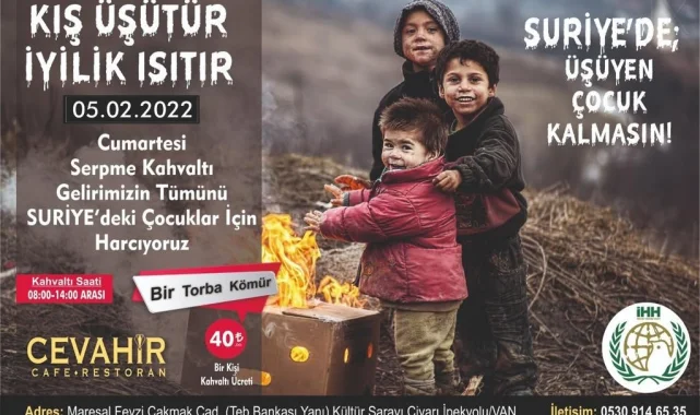 Van'da faaliyet gösteren Cevahir Kafe Restoran, bir günlük kahvaltı geliriyle çadırda yaşayan Suriyelilere kömür alacak.