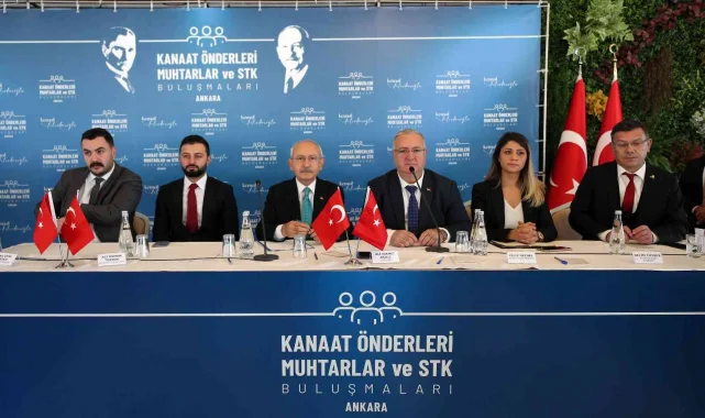 CHP Genel Başkanı Kemal Kılıçdaroğlu, Ankara'nın Elmadağ ilçesinde muhtarlar, sivil toplum kuruluşlarının temsilcileri ve kanaat önderleri ile buluştu. Herkesle konuşmaya açık olduklarını ve Türkiye'yi ileri taşımak için birlik olunması gerektiğini belirten Kılıçdaroğlu, vatan ve bayrak konusu hariç her şeyin konuşulabileceğini söyledi. Birliktelik çağrısı yapan Kemal Kılıçdaroğlu, "Çok ayrıştık, çok bölündük, çok kavgalı hale geldik. Türkiye'nin buradan çıkması lazım. Madem Adem ve Havva'dan geliyoruz, neden kavga ediyoruz? Hepimiz kardeşiz, o zaman hepimiz birbirimize insani olarak bakmak zorundayız. Birbirimizin derdi ile ilgilenmek zorundayız. Eğer bunu yapabilirsek emin olun Türkiye çok hızlı büyür, çok hızlı kalkınır, herkesin karnı doyar. Sıkıntıları aşmanın yolu birlikte olmaktır, beraber olmaktır. Sıkıntıyı ortaya çıkartanlar siyasilerdir, açık yüreklilikle söylüyorum. Ama sıkıntıyı çözecek olanlar da siyasilerdir" dedi.