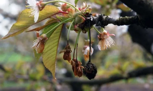 Çiçek monilyasının bitkinin özellikle çiçek, çiçek sapı, sürgün ve en son olarak da meyvelerini hastalandırdığını belirten İbrahim Sağlam, "İlkbahar aylarında püstüller ve spor kitleleri halinde çevreye yayılır. Nemli havalarda çiçekler üzerinde spor kitleleri gözle görülebilirken, enfeksiyona uğramış çiçekler kahverengi bir renk alır. İlerleyen zamanlarda ise hasta çiçekler çiçek sapları üzerinde kıvrılıp kuruyarak zamk akıntısı ile birlikte dallar üzerinde asılı kalır. Hastalık etmeni çiçekten sonra çiçek sapından sürgün ve dallara en son olarak da meyveyi hastalandırır. Hastalık ince sürgünlerin tamamen kurumasına, kalın sürgünlerde ve dallarda ise kanser yaraları oluşmasına ve dalların uçtan geriye doğru kurumasına yol açar. Yağışlı ve nemli hava koşullarında kanser yaraları üzerinde zamklanma da görülür. Hastalık etmeni yağışlarla birlikte yayılım gösterdiği için yağışın fazla olduğu yıllarda hastalık şiddetinin yüksek olma ihtimaline karşı kültürel önlemlere özel bir önem vermek gerektirir" dedi.