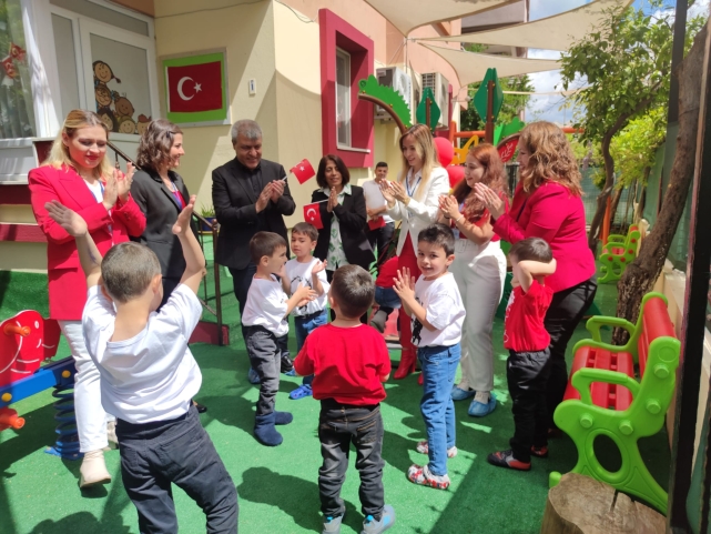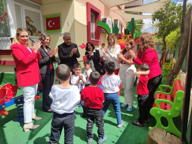 Söylenen şarkılar, oynanan oyunlar ve gökyüzüne bırakılan balonlarla eğlenceli dakikaların yaşandığı program, çocukların oyun parkında eğlenmesinin ardından sona erdi.