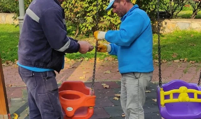 Çocuk oyun grupları ile spor aletlerinin bakımları yapılıyor