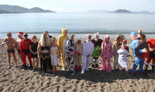 Muğla'nın Fethiye ilçesinde yaşayan çoğunluğu İngilizlerden oluşan yerleşik yabancı vatandaşlar, yeni yılın ilk gününde yardıma muhtaç çocuklar ve sokak hayvanları için Çalış Plajı'nda değişik kostümlerle denize girdi.