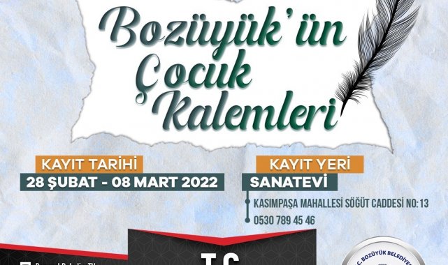 Bozüyük Belediyesi tarafından 'Bozüyük'ün Çocuk Kalemleri' ismiyle açılacak ve yazarlık eğitimi verilecek olan yeni atölyede her bir grupla 4 hafta boyunca yazı ve resimlerle öykü kurgulama, karakter yaratma ve durum oluşturma gibi metin çalışmaları yapılacak. Atölye sonunda her bir öğrenci kendi öyküsünü yazmış olacak. İlk aşamada 2012-2013 ve 2014 doğumlu çocuklar için açılacak olan atölyeye kayıtlar 28 Şubat- 8 Mart 2022 tarihleri arasında sanat evinde yapılacak.