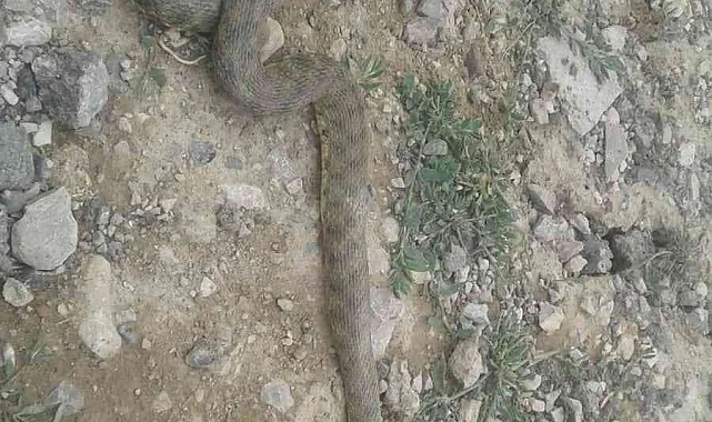Hakkari'nin Çukurca ilçesinde 3 metrelik engerek yılanı görüntülendi.