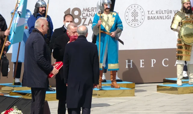 Çanakkale Deniz Zaferi’nin 107’nci yıl dönümünde ecdat yadigarı kutsal sancağın devir teslim töreni yapıldı. Kültür ve Turizm Bakanı Mehmet Nuri Ersoy, Cumhurbaşkanı Recep Tayyip Erdoğan’a sancağı teslim etti. Şanlı sancağı 3 defa öperek, alnına koyan Erdoğan, daha sonra sancağı Milli Savunma Bakanı Hulusi Akar’a devretti.