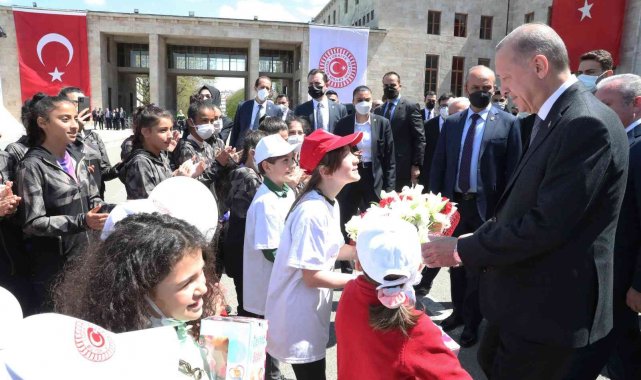 TBMM Başkanı Mustafa Şentop ile birlikte çocuklarla ilgilenen ve sohbet eden Erdoğan, daha sonra Meclis'ten ayrıldı.