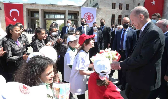 Cumhurbaşkanı Erdoğan, Meclis'te karşılaştığı çocuklarla sohbet etti
