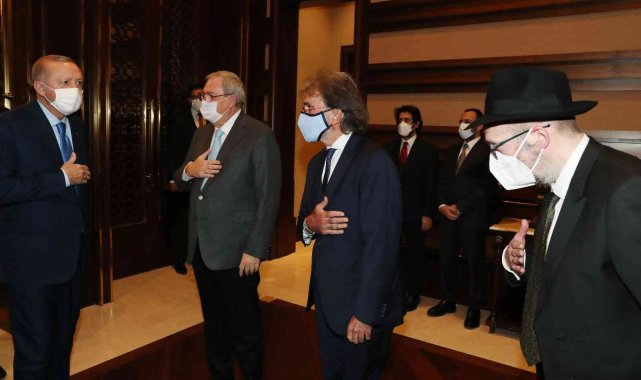 Cumhurbaşkanı Recep Tayyip Erdoğan, Cumhurbaşkanlığı Külliyesi'nde Türk Yahudi Toplumu ve İslam Ülkeleri Hahamlar İttifakı Üyelerini kabul etti. İslam ülkeleri Hahamlar İttifakı'nın mensuplarını ve Türk Yahudi Topluluğu'nun üyelerini ağırlamaktan memnuniyet duyduğunu ifade eden Erdoğan, konuklarına hitap ettiği konuşmasında, "İshak İbrahimzade'ye bu güzel buluşmaya vesile olduğu için ayrıca teşekkür ediyorum. Sizlerin şahsında tüm Musevileri şahsım ve milletim adına gönülden selamlıyorum. Ülkemizde geçirdiğiniz süre zarfında Türkiye'nin zengin kültürünü, kadim tarihini ülkemizdeki barış ve hoşgörü iklimini bizzat müşahede etme fırsatı bulacağınıza inanıyorum Türkiye Hahambaşılığının desteğiyle İstanbul'da bir araya geldiğinizi de memnuniyetle öğrendim. İstanbul'umuzun bu buluşma için en anlamlı şehirlerden biri olduğu aşikardır. Bildiğiniz gibi Fatih sultan Mehmet İstanbul'u fethettikten sonra şehrin kültürel zenginliğini artırmak için Haliç'in iki yakasında ikamet eden Yahudi cemaatlerini İstanbul'a davet etmiştir. Davete icabet ederek İstanbul'a gelen Yahudiler, bu benzersiz şehrin hayatına büyük katkı sağlamışlardır" dedi.
