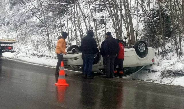 Sakarya'nın Geyve ilçesi D-650 karayolunda kar dolayısı ile kayganlaşan yolda sürücüsünün kontrolünden çıkan otomobil takla attı. Kazada araç içerisinde bulunan bir kişi yaralandı.