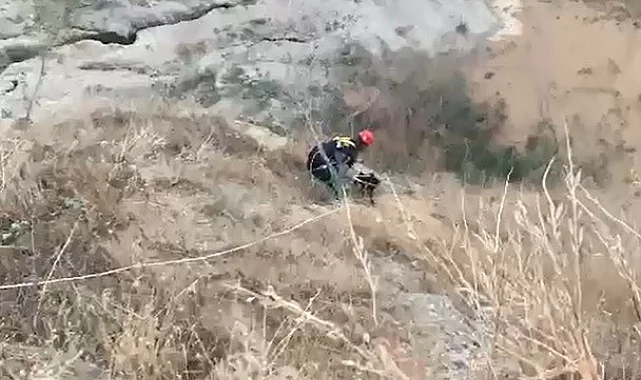 Aydın'ın Nazilli ilçesinde dağlık alanda mahsur kalan bir köpek Aydın Büyükşehir Belediyesi İtfaiye Daire Başkanlığı Nazilli İtfaiye Amirliği ekiplerinin çalışması sonucu kurtarıldı.