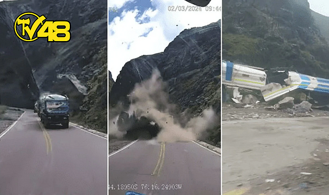 Peru'da yoğun yağışlar nedeniyle dağdan düşen devasa taşlar yoldan geçen araçları ezdi.