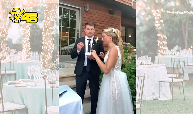 Görüntünlerde damadın yüzüne pasta süren gelin hiç beklemediği bir tepki alıyor. İntikam alan damat gelinin yüzüne pasta tabağını yapıştırıyor.