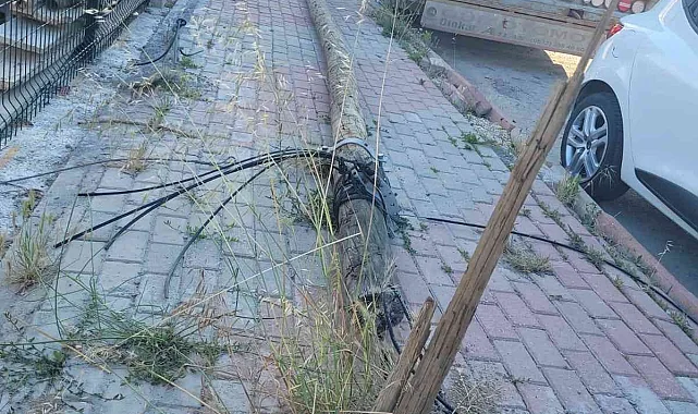 Bilecik'te damperini açık unutan kamyon sürücüsü birçok Türk Telekom'a ait iletişim direk ve hatlarına zarar verdi. O anlar bir işyerinin güvenlik kamerasına yansıdı.