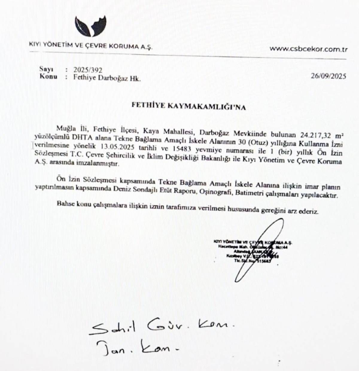 Fethiye’nin Darboğaz Koyu’nda, Muğla Kıyı Yönetim ve Çevre Koruma A.Ş. (eski adıyla MUÇEV) eliyle başlatılan iskele yapımı ve marina hazırlıkları, bölge halkı ve doğa savunucuları tarafından tepkiyle karşılanıyor.