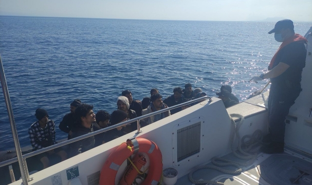 DATÇA AÇIKLARINDA GERİ İTİLEN 17 DÜZENSİZ GÖÇMEN KURTARILDI