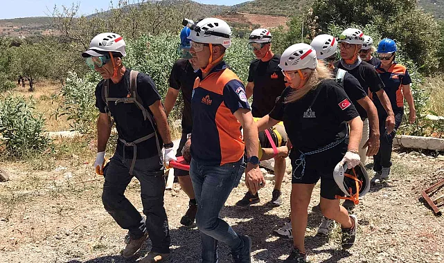 Muğla'nın Datça ilçesinde Muğla Mahalle Afet Gönüllüleri Acil Müdahale Ekipleri (MAG-AME) tarafından düzenlenen tatbikat çerçevesinde senaryo gereği depremde yaralanan bir şahıs enkaz altından kurtarıldı.