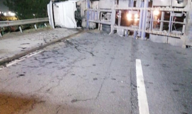 Alınan bilgiye göre, Payas-İskenderun Tem Otoyolu üzeri Azganlık Mahallesi civarında Mehmet Yıldız'ın (55) kullandığı 33 ACR 039 plakalı demir yüklü tır, virajı alamayarak devrildi. Kazayı görenlerin haber vermesi üzerine olay yerine jandarma, sağlık ve itfaiye ekipleri sevk edildi.
